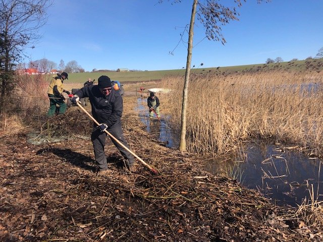 Det blev bl.a. til et rent og flot hus med nypudsede vinduer. Og på tangen længst mod vest blev de tilbageblevne elle- og piletræer fældet og helt fjernet. Så nu er der ikke mere uønsket trævækst på tangen. Også fjernelse af tagrør og dunhammer mellem tangen og vejen blev der taget hul på. Det er et meget stort arbejde, som vi må tage lidt efter lidt.