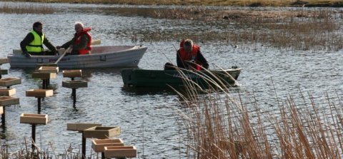 Også 20 nye mågekasser er der fremstillet. Der er virkelig lagt mange kræfter og kreativitet for dagen i forbindelse med hættemåge-kasserne. Der er udviklet et beslag, som let kan skydes ned i de jernrør, der nu er rammet ned i søbunden. Det betyder at defekte kasser let kan udskiftes og at kasserne kan demonteres uden brug af værktøj, når de skal ind om vinteren.