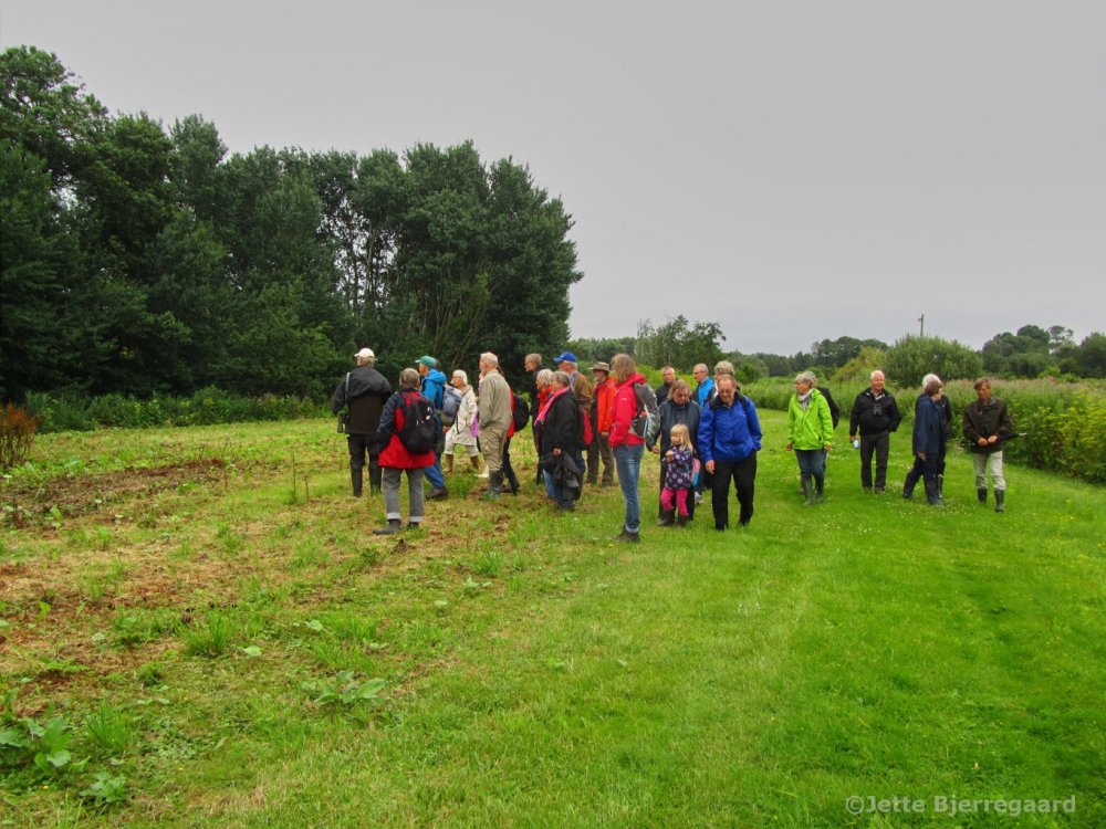 Der mødte 28 op her i blandt 2 børn, en del havde ikke været der før. Vejret var ikke godt for insekter, det var gråt og overskyet, men holdt tørt den først halv anden time. Alligevel fik vi en god tur, med en del insekter og flere sommerfugle og alle blomsterne er der jo.