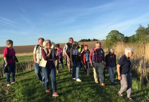 Med en dejlig aftensol og helt vindstille, mødte 24 medlemmer op. Ved indgangen til Reservatet blev de mødt velkommen af den første nattergal på turen. På langsiden langs åen, hørte vi den atter, dog inde hos naboen. Men på vores vej side, hørtes rørsanger og rørspurv.
