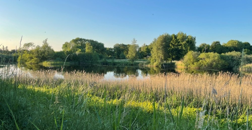 Klokken 19.00 var 14 medlemmer mødt op til en tur rundt i reservatet på denne skønne sommeraften, og allerede på parkeringspladsen blev vi mødt af fuglesang.