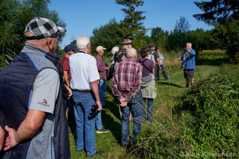 På denne lune og solrige efterårsdag mødte 20 deltagere op til Jens Kruses snapsetur i Kværkeby Fuglereservat.