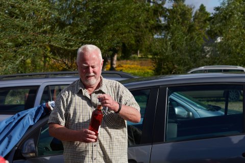 Selv om der blev hældt forsigtigt i glassene var det tydeligt, at humøret steg, som vi kom rundt i reservatet. Ved Museet var det muligt at købe opskrifter, færdige snapse og honning. Regnen indhentede os inden de sidste kom ud af reservatet.