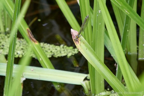 Det var ikke lige insektvejr, men lidt blev det dog til f.eks. 4 arter af sommerfugle stor og lille kålsommerfugl, blåfugl og okkergul græsrandøje, flere larvearter fra blandt andet mariehøne. Der var stadig en del nymfer og de fleste fik set den smukke blåbåndede vandnymfe, selvom spredningen blev stor med 45 mennesker. Flere af børnene fik også samlet en del fjer. Blomster og fuglesnak blev det også til.