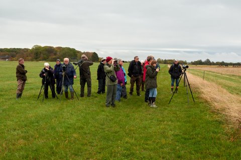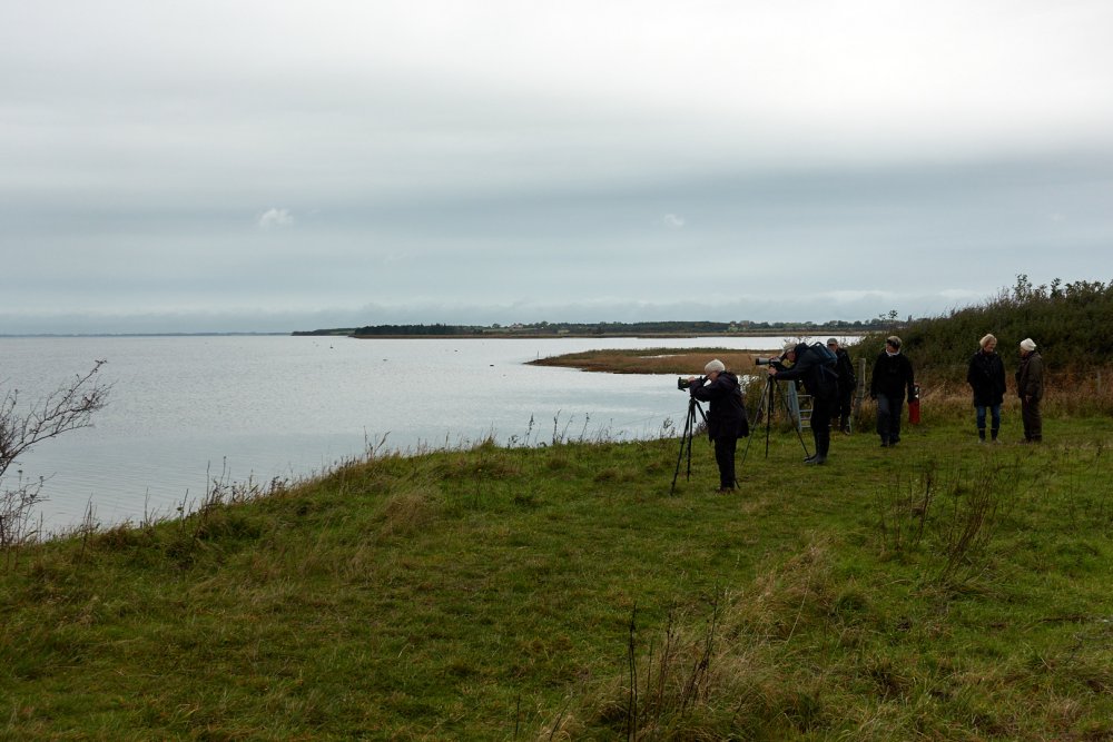 Vi startede med en tur op i tårnet, og gik efterfølgende den nordlige rute mod Hylteholme forbi Skydebanesøerne til Fugleskjulet og retur til Naturcentret i alt ca. 3 km. Med Arne Hastrup som guide fik vi meget at vide om trækfuglene, hvoraf mange kom fra Sibiriens tundra på vej mod Vadehavet i Danmark og Holland. Der kom mange store træk af Bramgæs og de fleste landede i området ved Klydesø. Vi gætter på et antal mellem 2000 og 3000 gæs. Efter frokost kørte en del hjem, mens nogle inden hjemturen tog et kig ud over Mulvig. På vejen hjem mod Ringsted så vi nærmest sort sol af stære, der dels fløj og dels sad i lange baner på højspændingsledningerne.